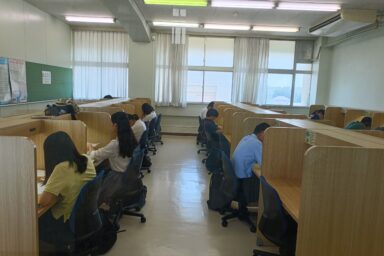 休み時間、放課後はもちろんのこと、長期休業中も利用できる自習室で落ち着いて勉強することができます。