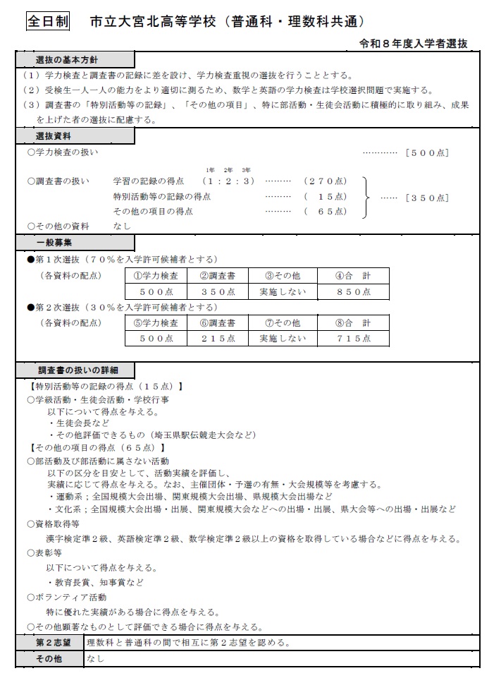 さいたま市立高等学校への出願方法令和8年度生徒募集要項(普通科・理数科)