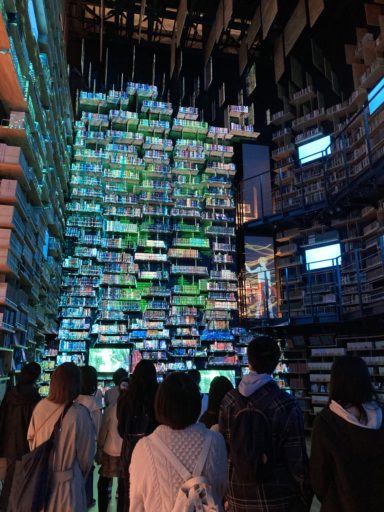 秋晴れの中、図書委員会の活動の一環として「文学散歩」に武蔵野角川ミュージアムに見学に行ってきました。当日は、バックヤードの様子やミュージアムでの取り組み、そして蔵書の説明を受けました。日頃見られない場所や蔵書管理の徹底など、生徒達はとても興味を持って聞いていました。また、角川ミュージアムの1つの目玉であるプロジェクションマッピングにはとても魅力を感じました。