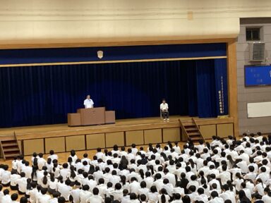 7月19日に終業式が行われました。校長先生から学習への取り組みの素晴らしさについて誉め言葉を頂きました。また、生徒指導主任からは夏季休業へ入るタイミングでもあり、マナーについての話がありました。終業式後は、インターハイへ出場する陸上部の壮行会を行い生徒全員で激励しました。