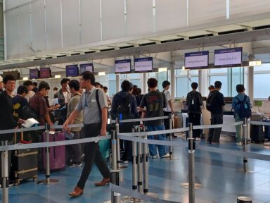 初日はA(1,2,3組)・B(4,5組)・C(6,7,8組)団の3団に分かれ、それぞれ羽田空港、成田空港から午前便で出発し、午後シンガポールに到着。