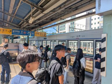 空港や街中に日本語の標記がたくさんあった。案外日本語が通じることや英語があまり通じない場面があることにびっくりした。日本語、韓国語、英語のどれかでコミュニケーションに挑戦できるというのはとてもおもしろいと感じた。駅にいる現地の方に電車の路線を聞いたところ、「日本の学生ですか」と日本語で話してくれる場面もあって驚いた。