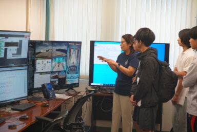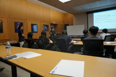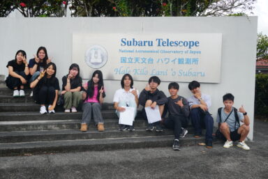 午前中はマウナケア登頂に備えてホテルで少し休息。10時から国立天文台ハワイ観測所の施設見学と天文学の森谷助教からの講義を受けました。主にマウナケア山頂に設置されているすばる望遠鏡の観測データを収集、解析する施設です。データ管理室ではたくさんのモニターを一つひとつ丁寧に説明していただき、望遠鏡の映像も観ることができました。森谷さんからは「研究者とは?」「連星について」を講義いただきました。「何を面白いと思うか。面白さなんてその辺にたくさん転がっている。自分が面白いと思うことを見つけてほしい」とこれからの進路についてもアドバイスいただきました。
