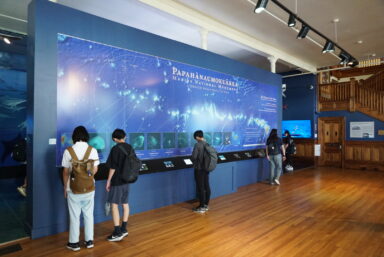 その後モクパパパディスカバリーセンターで海と環境の関連について学習しました。人間が捨てたゴミ(特にプラスチック)が海に与える影響は想像以上でした。ハワイに来て出会ったウミガメなどを守るために私たちにできることを考えました。