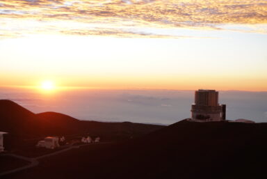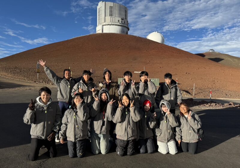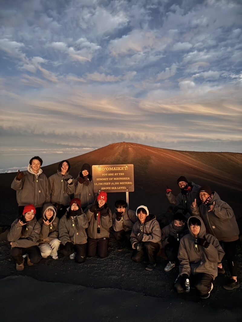 途中雨が降ってきたと思いきや雲の中でした。岩石や地層も間近に観ることができ、気づけば山頂です。すばる望遠鏡や国際協力によるジェミニ望遠鏡などの大きさに圧倒されました。ちょうどNASA赤外線望遠鏡の屋根が開くところも観ることができました。山頂からみる夕陽は一生記憶に残るものとなりました。