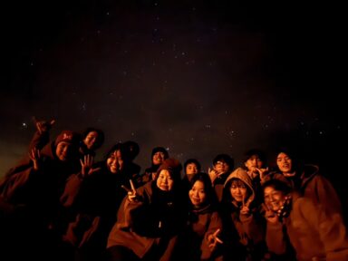 日没後は観測に影響が出るため滞在禁止となっています。少し降りたところで天体観測をしました。埼玉では観ることのできない星空に感動しながらガイドさんから星座の説明を受けました。Skyチームも聞き入りお目当ての星座を探しましたが、まだ観測できるタイミングではなかったようです。天の川や夏の代表的な星座を自分の目で確認し知識を深めることができました。