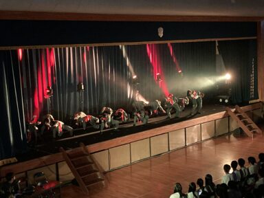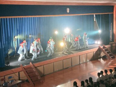 10月2日(木)に行われた、大宮北高校創立70周年記念行事のステージ発表で、ダンス部は1年生による学年作品、2年生れいな、まきによるソロコンテスト作品、2年生12人によるダンスバトルトーナメントの3つを行わせていただきました。