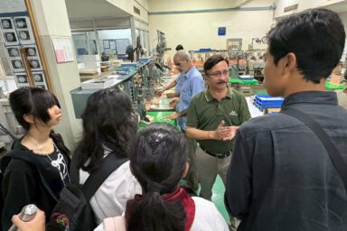 日本の工場と似ており、部品の製作、組み上げ、検査などセクションに分かれて作業をされていました。製作に使われている機器は日本製のものも多く、このあたりからも両国の連携が見て取れました。