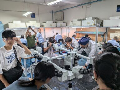 BBSが本校を訪問してくれた時に、BBSの日本語の先生が本校で使用している顕微鏡の中にMagnusのロゴが入っていることに気づき、「このブランドなら見学できるよ」と設定をしていただきました。