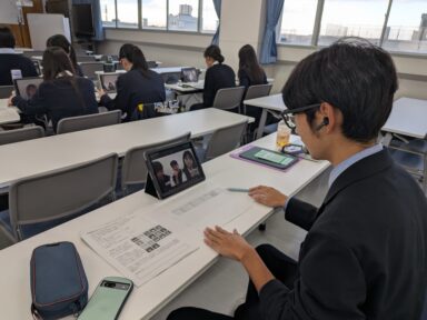 As an activity to commemorate “World Day of Cultural Diversity for Dialogue and Development” on May 21, we held the Korea – Japan Sister Schools Collaboration Online Program on October 27, 2025. Samil Technical High School in Korea and our school have been collaborating as sister schools. The online program is one of such activities, in which we exchange with each other on the themes of culture, science, and technology.