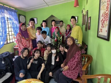 4、5、6、8組はマレーシアに入国し、カンポンビジットというプログラムを行いました。「シナラン村」というところに受け入れていただきました。到着すると様々な楽器の音色で大歓迎してもらいました。