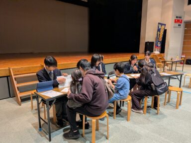 ワークショップの内容は「天体望遠鏡を作ろう!」というもので、望遠鏡の原理を体験的に学んでもらうワークショップです。実際にレンズ2枚と筒1つで簡易的な望遠鏡が作成できることを体験してもらいました。主な対象は小学生でしたが、本校生徒の説明を聞きながら原理を理解し、「家に材料あるね!」「(保護者の方に)虫めがね買って帰ろう!」と元気に言っている様子が見られました。