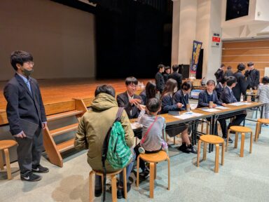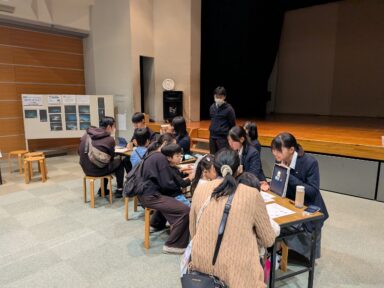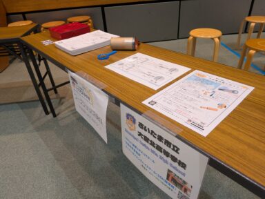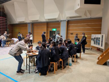 本校はSSH天体観測フィールドワークを実施しています。今回は宇宙にちなんだワークショップの出展という依頼があったため、先述のフィールドワーク参加生徒が望遠鏡に関するワークショップを出展しました。