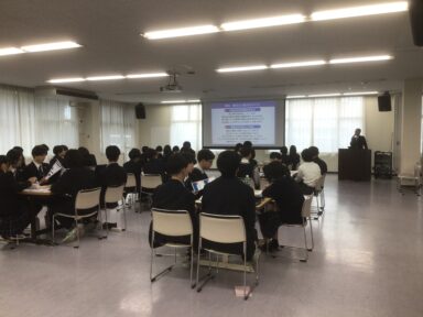 SSH福島フィールドワークの事後学習を行いました。本事後学習では講師として復興庁福島復興再生総局事務局長の開出英之様をお招きし、さいたま市立大宮国際中等教育学校と合同で実施しました。