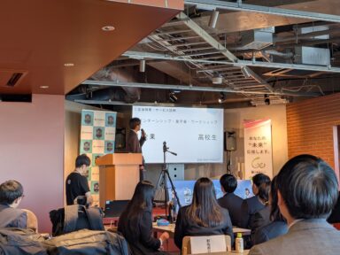 トップバッターとして大変勢いのあるプレゼンでした。高校生の当事者が感じる悩みをビジネスにするアイデアが良かったです。とても高校生とは思えないクオリティの発表内容でした。