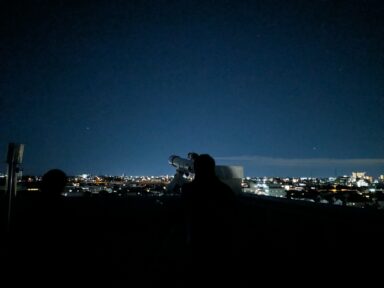 天体望遠鏡では恒星のベテルギウスやカペラ,アルデバラン,シリウス、惑星の木星や土星、星団のすばるなどを観測することができました。普段よく目にする月でさえも天体望遠鏡では違った姿に観られるので、部員は大興奮の様子でした。