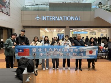 Today, a delegation of seven students and one accompanying teacher from Taipei Municipal Songshan Senior High School departed from Taipei Songshan Airport and arrived safely at Haneda Airport at 6:00 p.m.
