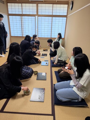 Cultural Experience: Matcha and Calligraphy The students paired up with “buddies” to experience traditional Japanese tea culture. After being served tea by the MOIS students, the guest students tried whisking their own Matcha. While some found the traditional “Seiza” (kneeling) position a bit challenging, their smiles showed how much they enjoyed the authentic taste of Japan. Later in the day, they practiced “Shodo” (calligraphy), carefully brushing meaningful kanji characters onto decorative paper boards (shikishi).