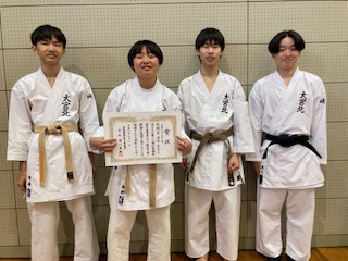 近隣の道場や学校等、幼年から一般まで総勢500名以上の選手が参加し、盛大に開催されました。高校生女子組手の部で、濵野真奈美さんが敢闘賞を受賞しました。男子形・組手の部においても、入賞には届きませんでしたが自身の課題を把握でき、次の大会に向け意味のある大会となりました。温かいご支援、ご声援ありがとうございました。