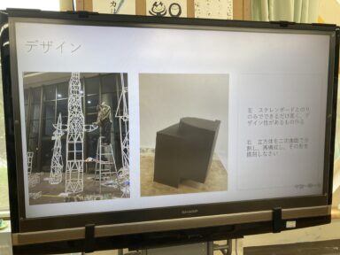 始めにお話し頂いた、大学三年生の中下さんはモノづくりや図面について学んでおり、形や色、デザインの使いやすさが評価される美術はとても新鮮でした。