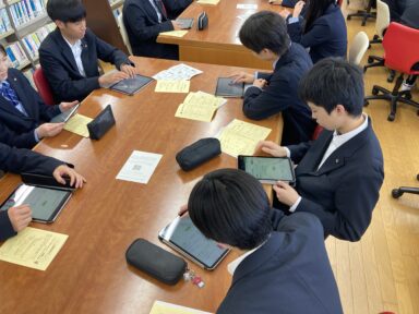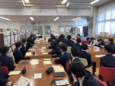 オリエンテーションでは、司書先生や図書委員作成の図書館案内動画を使って利用はもちろん、授業で活用する本の種類や図書委員会が主催する校外行事への案内なども同時に紹介しました。ぜひ多くの新入生の皆さんに活用して頂きたいです。