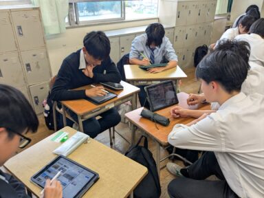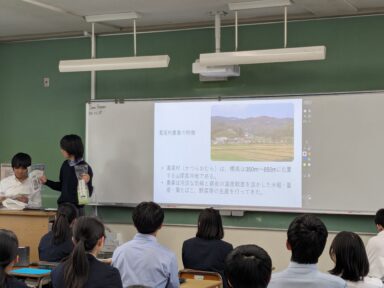引継ぎでは3年生が地域の特色を活かしたプレゼンテーションをしてくれ、初めて聞く地域のお祭りや特産物に、2年生は興味津々な様子でした。活動テーマを検討するにあたり、地域の観光協会のホームページなどを閲覧して調べ学習を行い、考えたテーマが地域の課題を捉えて効果的・現実的なPR活動になっているか、活発に意見交換をすることができました。